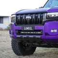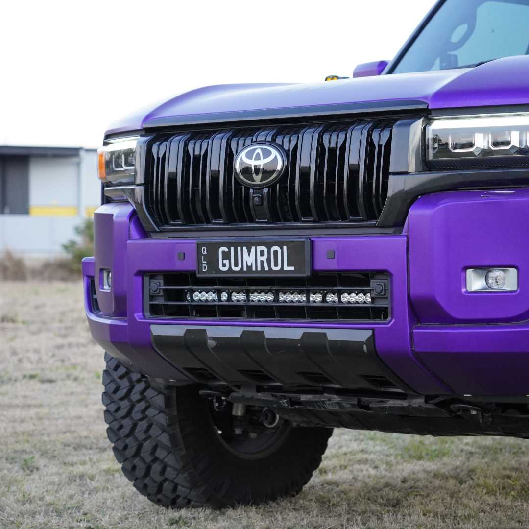VX and Kakadu models feature a black plastic license plate plinth that may block the light bar output. We recommend removing the plinth and mounting the license plate directly to the front bumper using an aftermarket bracket. Use the included plastic caps to fill the leftover holes.
